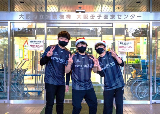 本プロジェクトは、大阪を拠点に活動する「ENTER FORCE.36」が1年間で開催されたeスポーツ大会の激闘を通じて得た戦績で、病院で治療に励む子どもたちや放課後デイサービスに通う子どもたちにクリスマスプレゼントを届けるプロジェクトです。「eスポーツを通じて得た成果で、子どもたちに“笑顔”とこれからの未来への“希望”を届けたい」という想いから取組みを始め、本年で3回目を迎えました。そして、この想いに賛同し、一人でも多くの子どもたちに笑顔を届けるべく、このたび南海電鉄が協賛、およびeスタジアム社が参画し、クリスマス前の12月19日には大阪母子医療センターの子どもたちにプレゼントをお届けしました。
