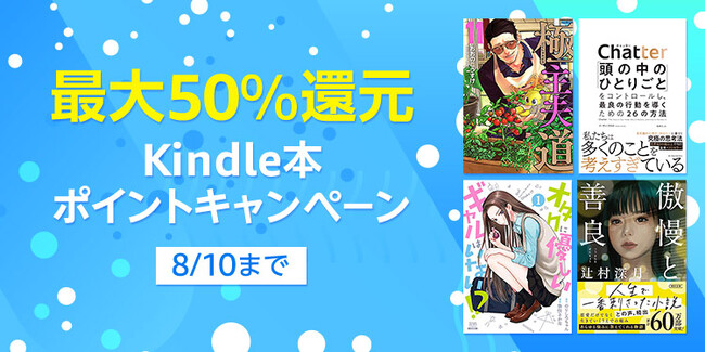 Kindleでは、50%ポイントバックキャンペーンを8/10まで開催中!!
