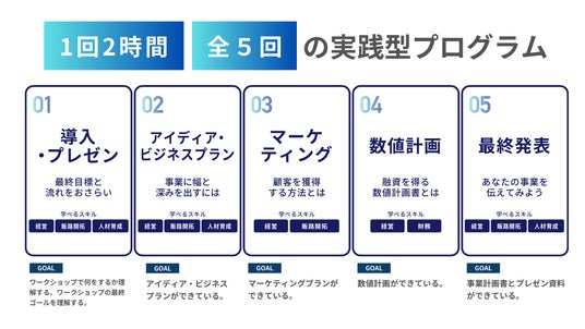 弊社が運営するこれから起業する人、経営に関する知識を身につけたい経営者の方を対象にした「創業支援ワークショップ」をオンライン化することにより、より多くの自治体様にご利用いただけるコンテンツとなっております。