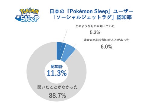 日本の『Pokemon Sleep』ユーザーにアンケート調査を実施したところ、ソーシャルジェットラグを88.7%の方が知らないと回答しました。