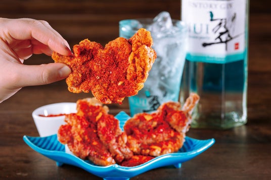 「骨付きガブリタン」は今回のキャンペーンのために翠ジンによく合うおつまみ商品として開発。希少部位でもある豚のタン元を唐揚げにして赤からオリジナルの旨辛スパイスでコーティングしています。ジューシーで旨みあふれる濃厚な味付けに仕上げた「骨付きガブリタン」はスッキリと爽やかな味わいが特徴の翠ジンとの相性も抜群です!