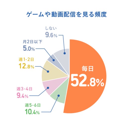 「家庭での学習習慣は大切」だと考えるママは実に9割を超えていますが、「学習習慣化できているか?」という問いに「できている」と自信のある回答は3割未満。一方で学習以外の家庭内習慣に目を向けると、7割を超える子どもたちがゲームやYouTubeなどの動画配信サービスを週4日以上利用しており、習慣化している事が見て取れます。