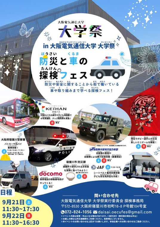 大阪電気通信大学は9月21日(土)・22日(日)に寝屋川キャンパスで第64回大学祭を開催する。