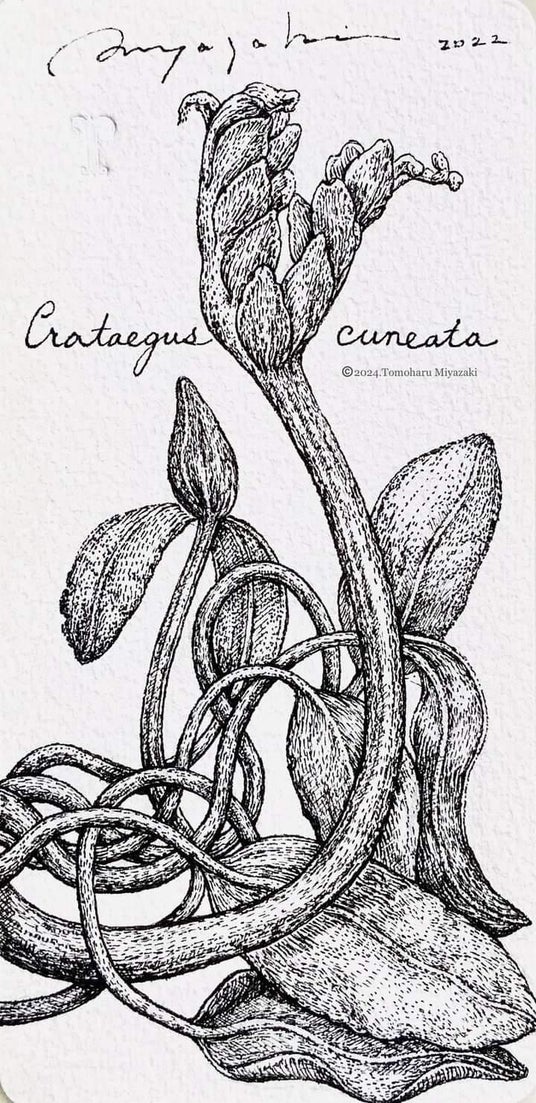 水山査子 Crataegus cuneata / 紙にインク (2022)