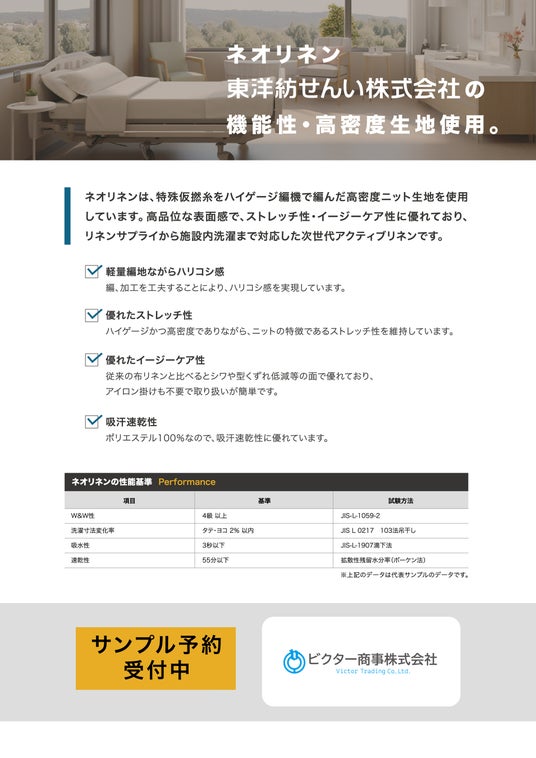 株式会社の生地を使用したノーアイロンリネン『Neo Linen』を発売しました。