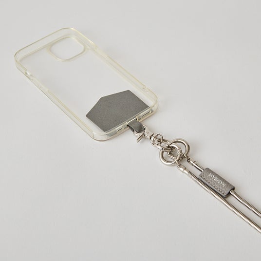 長さ調節ができるレザー(本革)タイプのスマホショルダーストラップとは違い、「スネークチェーンモバイルストラップ」は金属のチェーンを使用しているため、どうしても単体では長さ調節がきかないアイテムでした。