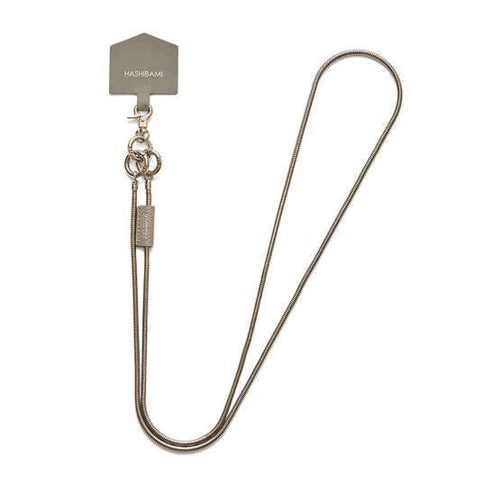 そこで既にHASHIBAMI(ハシバミ)のスマホストラップを使用しているユーザーからいただいたフィードバックをもとに、チェーンの長い130cmバージョンと、短い115cmバージョンを製作し、「スネークチェーンモバイルストラップ」を【さまざまな身長や体型によって長さの選べるアイテム】にアップデートいたしました。