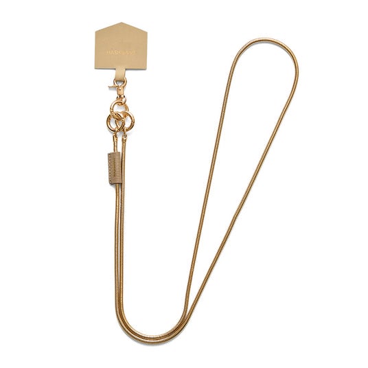 “今時”女子の心を満たすファッションブランド 、HASHIBAMI(ハシバミ)より、再販と完売を繰り返す人気のスマホストラップ「スネークチェーンモバイルストラップ」に既存のストラップの長さ(全長130cm)からおよそ15cmも大幅にカットした、短いタイプ(全長115cm)が登場。