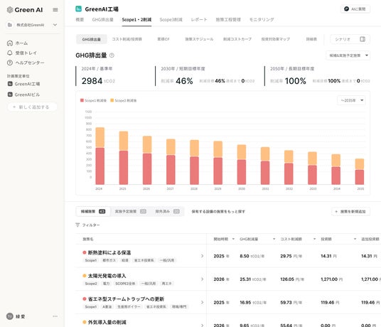 『Green AI』の排出量削減計画策定画面