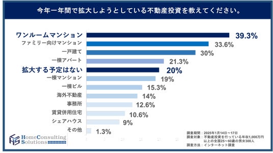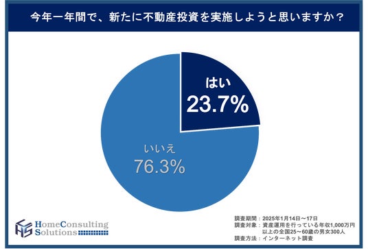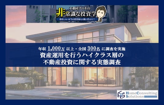 不動産コンサルティングのホームコンサルティングソリューションズ株式会社(愛知県名古屋市、代表・小林大祐)は、資産運用を行っている年収1,000万円以上の全国の男女25~60歳の300名を対象に、今年一年間の不動産投資に関する実態調査を実施しました。