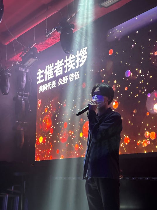 イベントの最後には、弊社共同代表久野啓伍が登壇し、弊社のこれまでの2年間の活動への感謝と学生に向けたエールを送りました。