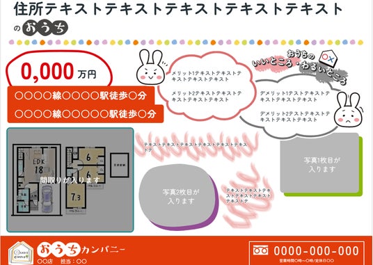 おうちカンパニー公式ホームページにて、簡単なフォーマットへおうちのご情報を入力いただけますと、すぐにチラシ作成を開始できます。