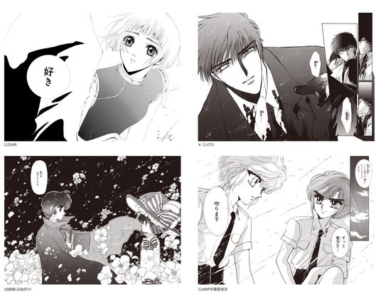 CLAMP作品に登場する「愛」は、一つの言葉では表せないほど多様です。このエリアでは、「CLAMPが描く愛」にフォーカスし、作品を広く横断しながら愛にまつわるシーンを集めました。大きく8つのカテゴリーに分類した「愛」を読み解きながら、それぞれの愛のかたちを感じてみてください。