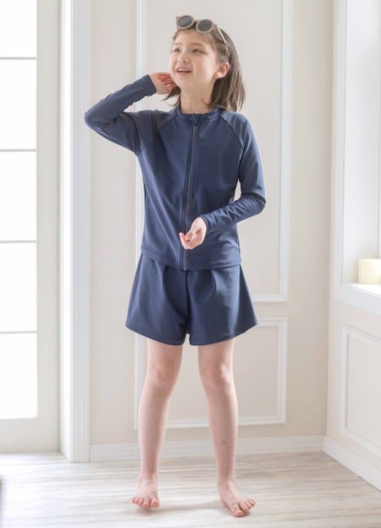 ラッシュガードいらず、ジッパーだからお着替えも楽々。