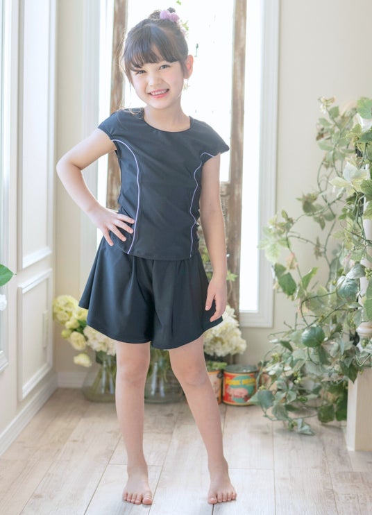【肩フリル】黒地にライラックのラインが入ったタイプ