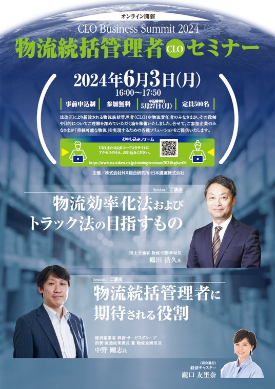 NIPPON EXPRESSホールディングス株式会社(社長:堀切智)のグループ会社、日本通運株式会社(社長:竹添進二郎)は6月3日(月)に、「物流統括管理者(CLO)セミナー」をオンラインで開催いたします。