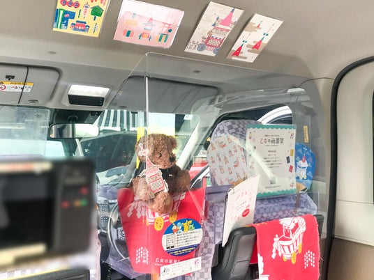 タクシーの車内空間を有効に活用し、かわいく祇園祭を楽しんでいただくことを目的に、フィールドの「乙女の祇園祭」のデザイナーチームと弊社で試行錯誤を重ねた結果、両社が大切にする「遊び心」と「創意工夫」で車内を演出しました。