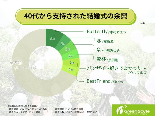 10代以上の男女200名を対象に「結婚式の余興で披露する歌」についてのアンケート調査を実施しましたので、お知らせいたします。