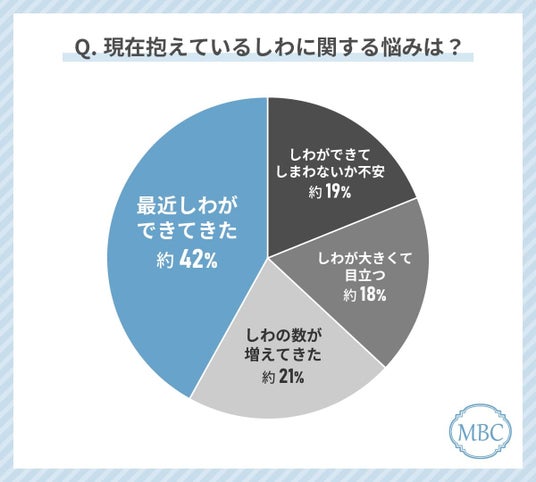 「現在抱えているお肌のしわに関する悩みはどのようなものですか?最も近いものを選んでください。」とアンケート調査した結果、