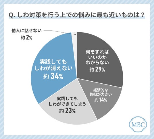 「あなたがしわ対策を行う上での悩みに最も近いものはどれですか?」とアンケート調査した結果、