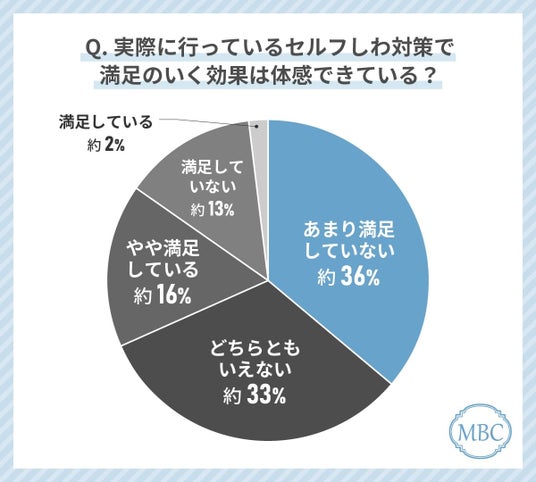セルフしわ対策では、「あまり満足していない」「どちらともいえない」方が多く、