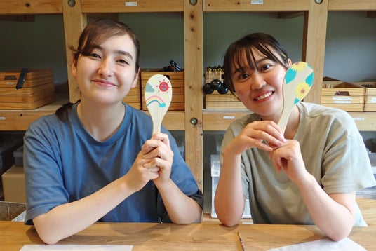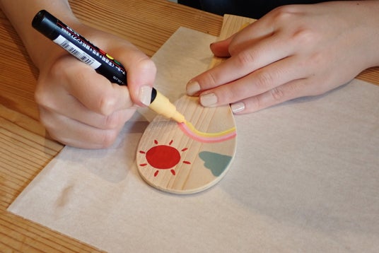宮島しゃもじの木の心地よさを感じながら、「元気」や「笑顔」から想起したイラストを自由に描こう。ペイントしたしゃもじは、kiondひろしま店内にて展示されます。258点の個性豊かなアート作品が店内に元気の輪をパッと咲かせ、ようやく"kiondひろしま完成"となります。