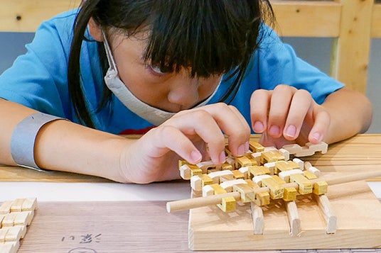 ホオノキやヒノキ等いろいろな樹種を好みの組み合わせで選んでいただき、日本の伝統工芸である「組子」の技法でコースターを作ります。