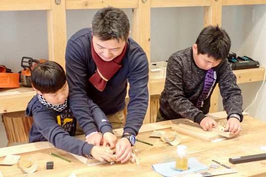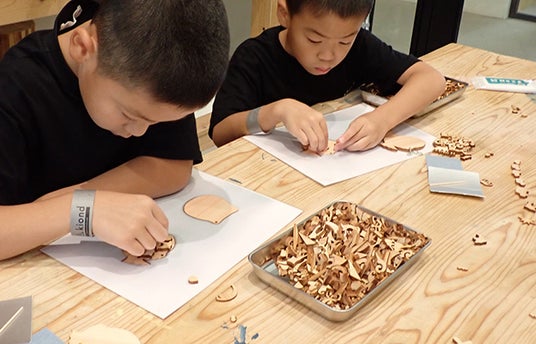 大人も子ども木の感触に癒される参加型アート体験