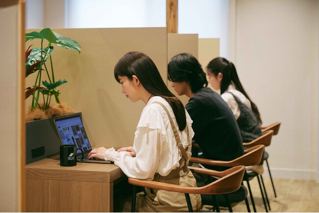 仕切りのついたデスクや個室席は、落ち着いて過ごしたいときに。事前予約も可能な会議室(定員4名)やフォンブース、コピー機もございます。