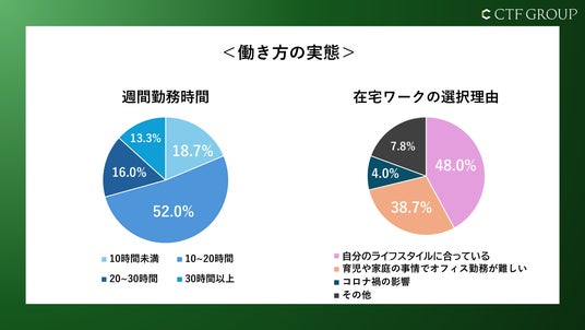 週10-20時間の勤務が最多であり、ライフスタイルや家庭の事情に合わせた柔軟な働き方を選択している傾向が顕著です。