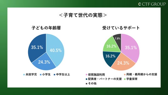 子育て世代の約4割が未就学児の保護者であり、保育施設の利用や両親からのサポートを受けながら、仕事と育児の両立を図っている実態が見えてきました。