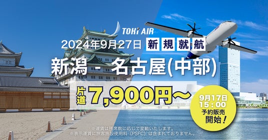 名古屋(中部)線の就航は、「新潟=札幌(丘珠)」・「新潟=仙台」に続き3路線目となります。今後も「革新的なモビリティサービスを通じて地域産業の活性化を目指す 」トキエアのビジョンのもと、路線ネットワークを拡充してまいります。