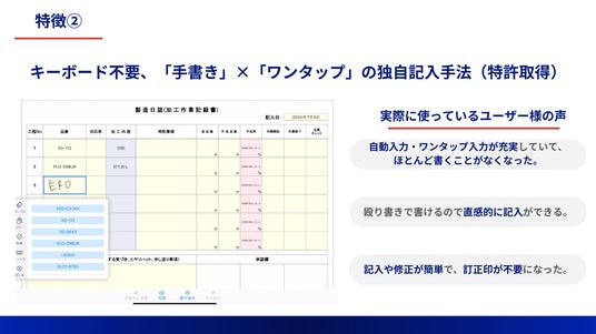 タブレット操作に不慣れな方でも気軽に入力でき、これまで紙の帳票に手書きしていた操作感をそのまま再現しています。