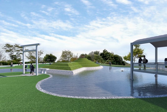 また休憩所では前方後円墳と大阪平野を一望できる壮大な眺望が広がり、昼間は青空に包まれ、夜には市街地の夜景が美しく輝く、まさに天空の舞台。時代を超えた「前方後円墳」の存在感と、大阪平野を望む圧倒的な景観が融合することで、訪れる人々に深い感動と安らぎを与える場所となることを目指しています。