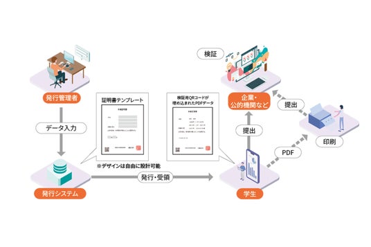 デジタル証明書紙・PDFの証書を、検証可能なデジタル証明書へ。発行・再発行・保管の手間やコストを削減するのみでなく、 改ざん耐性と運用効率を両立し、証明の信頼を高めます。