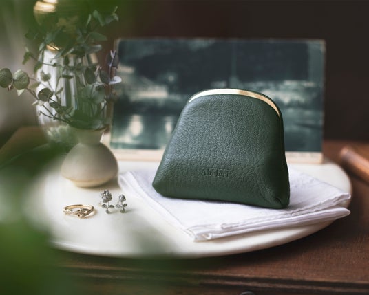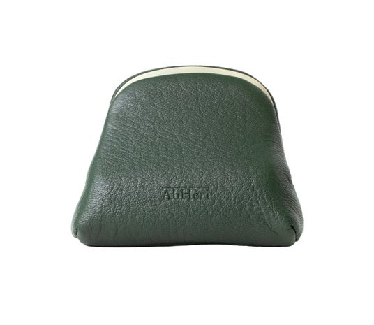 革本来の質感を際立たせる、丸みを帯びたしなやかなフォルムが、手に取るたびに心地よさを与えます。色は洗練されたオリーブグリーン1色。サイズは、約H65mm×W80mm×D25mmです。