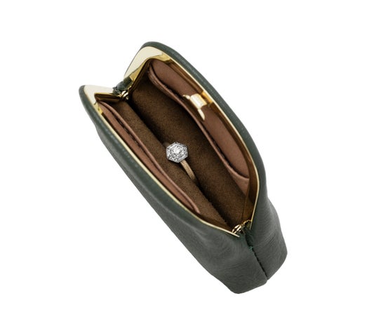 リングフォルダーは取り外し可能なため、収納の自由度が高く、お好みの使い方にアレンジできるジュエリーポーチです。