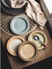 陶器製 一人用食器セット【トレー付き・スープ皿・パスタ皿・ごはん皿・朝食用ボウル】