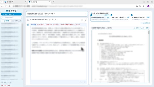 規程・手続き検索AI「とわナビ」:AML業務の負荷を軽減