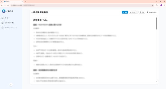 「とわログ」による議事録のサンプル(一般会議用フォーマットでの例)