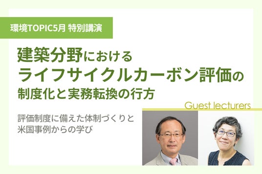 旬な話題をお届けする環境TOPIC特別講演では、特別講師をお招きし「建築物LCA(ライフサイクルアセスメント)」を取り上げた講演とパネルディスカッションを実施します。