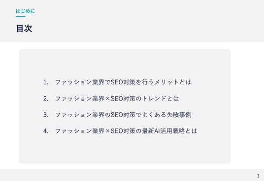 「2025年版 ファッション業界向けAI×SEOトレンドレポート」は、当社公式ウェブサイトより無料でご請求いただけます。この資料はAI化が進む現代において、ファッション業界でできるSEOでのAI活用法を徹底的に解説しています。