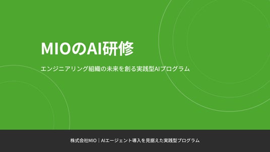 株式会社MIO(本社:東京都港区、代表取締役:松田進也、井上幹郎、以下「MIO」)は、エンジニアの働き方とスキルを再定義するコンセプト「RE:WORK × RE:DESIGN」の第四弾として、企業のAI活用を支援する実践型プログラム「MIOのAI研修」の本格提供を開始いたします。