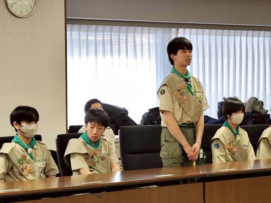 一般社団法人 日本ボーイスカウト東京連盟つばさ地区は、教育プログラムの最高峰である「富士スカウト章」に進級したスカウトたちによる大田区長への表敬訪問を3月27日に実施しました。