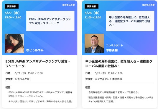 「EDEN JAPAN ADULT EXPO 2026」 において、医療・エンターテインメント・マーケティング・ビジネスなど、多彩な分野の専門家によるセミナーを開催することを発表いたしました。