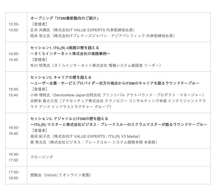~ITIL(R)の考えを社内浸透させるコツ、ITSM人材のリアルなキャリアパス事例、ITSM・アジャイル領域間のコラボレーション方法など、3つのトークセッションを開催~