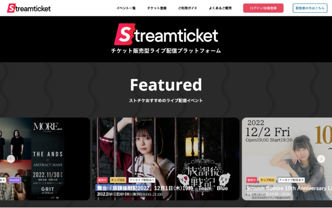 チケット販売型ライブ配信プラットフォーム『STREAM TICKET』(ストチケ)