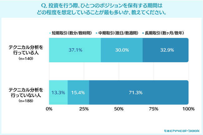 この結果からは、テクニカル分析を行っている人は長期取引の割合が減り、短中期取引(特に短期取引)の割合が増えていることが読み取れます。