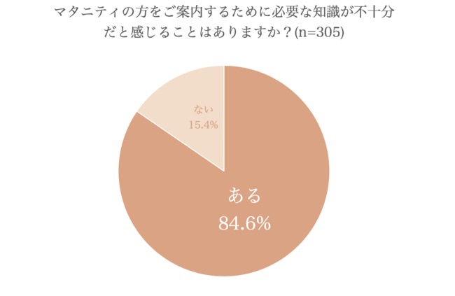 「マタニティの方への適切なご案内について、正しい知識が欲しいと思いますか?」という質問には98%の方が欲しいと回答し、「妊婦さんの周期ごとの体の変化の特徴が知りたい」「医学的根拠のある情報をお伝えしたい」など様々な声をいただきました。
