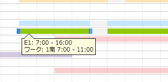 画面上でワークを選択した際に表示されるワークの両端をマウスのドラッグ操作で自由に変更することができます。当日の作業状況に合わせて管理者による細かな調整が簡単にできます。